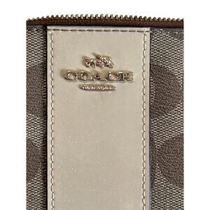 Coach Signature Brown Wrist Wallet Cream Sparkle Patent Leather Accents Hang Tag