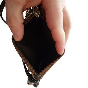 • Coach Signature Brown Wristlet/Clutch Bag With Leather Strap