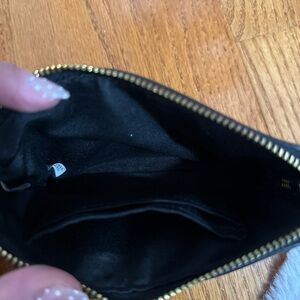 Elegant Coach wristlet with signature pattern. Features a convenient wrist strap and zip closure.