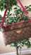 It features the brand's signature "C" pattern in brown PVC with pink accents on the strap and zipper lining.