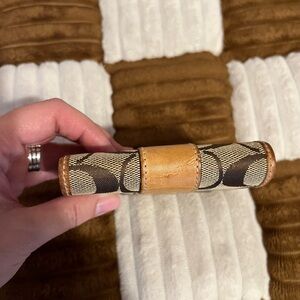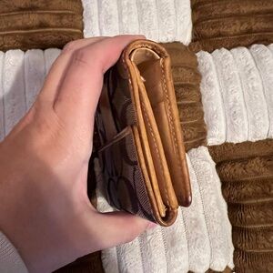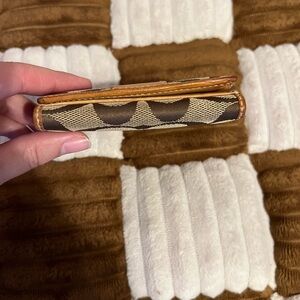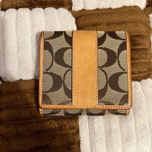 Coach Signature Brown and Tan Compact Wallet GUC!