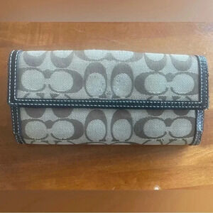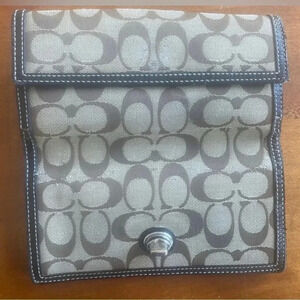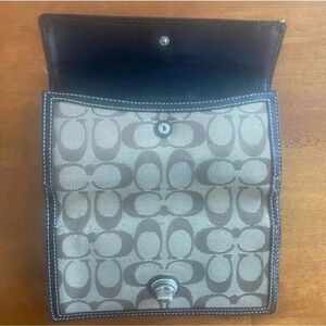 Coach Signature Brown/Beige Canvas Turn-lock Checkbook Wallet w/ Change-purse.
