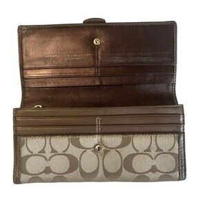 Coach Signature Buckle Browm Envelope Wallet Checkbook Card Slots 8 x 4