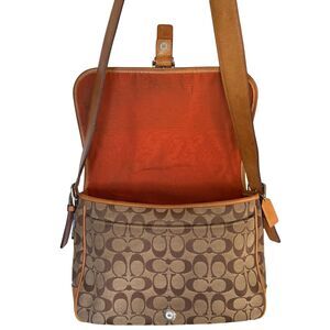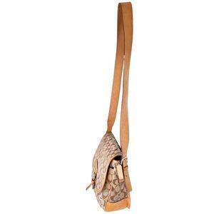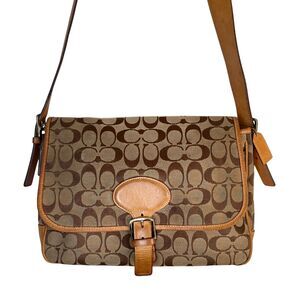 Coach Signature Buckle Flap Messenger Bag – Tan Leather Trim