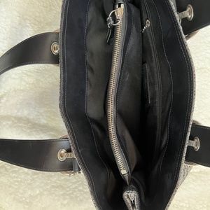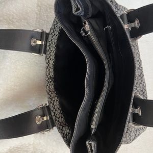 Excellent condition. Gently Used. Exterior is Canvas Signature ‘C’ Satchel with Adjustable Leather Duo Buckle Straps, Silver Hardware and Hang Tag. Interior is Black Lining. The Back of the Bag has a Full Pocket with Magnetic Snap.