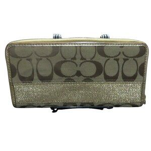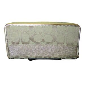 Coach Signature C Canvas Leather Glitter Zip Around & Snap Closure Long Wallet
