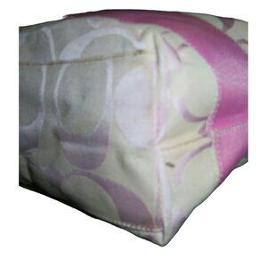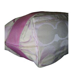 Coach Signature C Cream & Pink Stripe Canvas & Leather Tote Bag