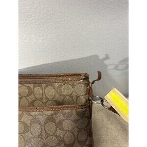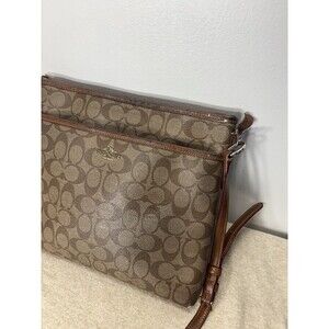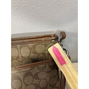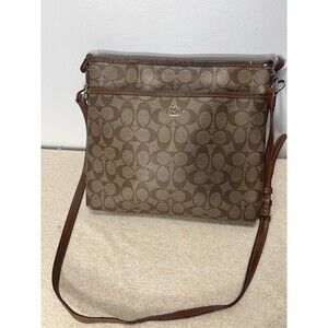 Coach Signature C File Bag Crossbody Shoulder Bag Purse Khaki Mahogony Sz 12x10