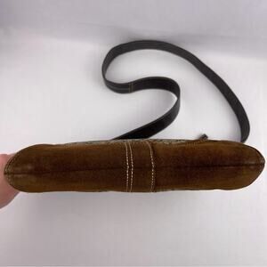 Leather strap can be worn as a shoulder or crossbody length. Strap is 48" end to end.
