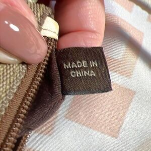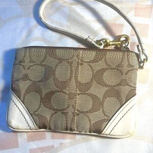 Coach Signature C Khaki Wristlet with White Leather Trim - GUC