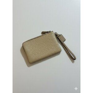 Coach Signature C Logo Beige Nude Embossed Patent Leather Corner Zip Wristlet