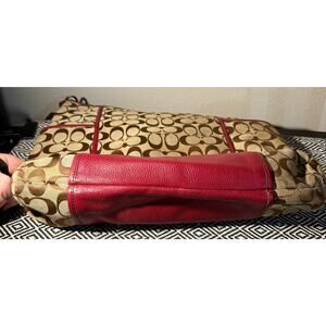 Coach Signature C Park Hobo Shoulder Tote Bag Khaki Crimson