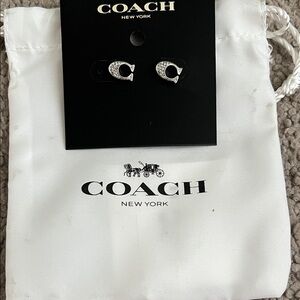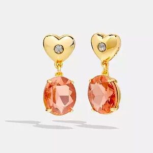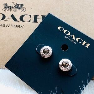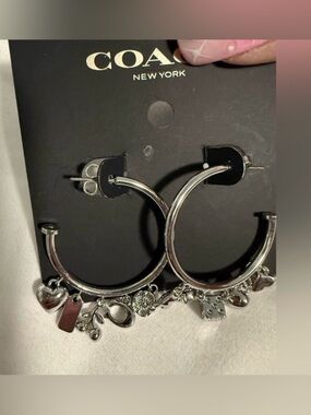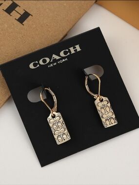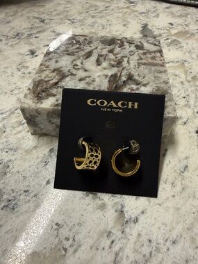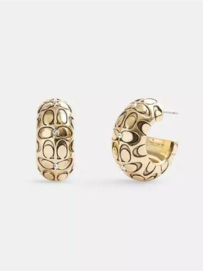 Coach Signature C Pattern Pink and Gold Enamel Huggie Earrings NWT