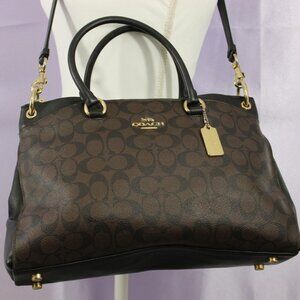 Coach Signature C Satchel Tote Bag with Strap – Brown/Black Leather