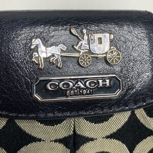 Coach Signature C Snap Close Long Black Ivory Logo Wallet with Lilac Interior