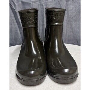 Coach Signature C Women’s Rubber Rain Boots Dark Olive Black Size 8