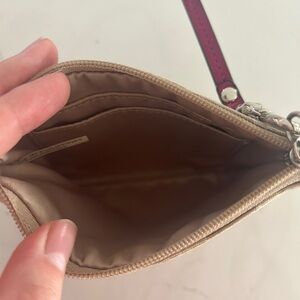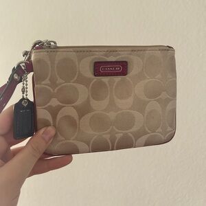 Coach Signature C Wristlet, Vintage, Beige & Burgundy - Like New