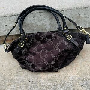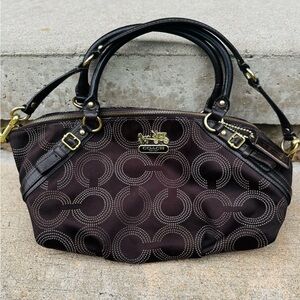 Coach Signature Canvas Brown Handbag Shoulder Bag 12.6x9.4in