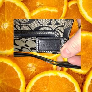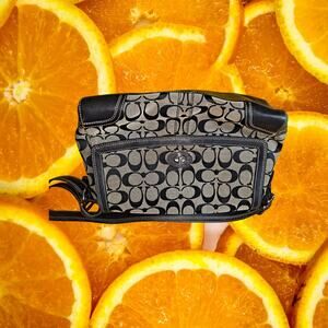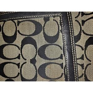 Coach Signature Canvas Brown Shoulder Baguette Leather Purse With Drawstring