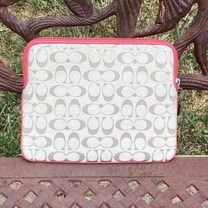 Coach Signature Canvas Leather Detail Zip Top iPad Case