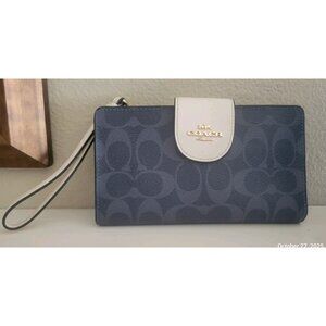 Coach Signature Canvas Phone Wallet Navy White CW780