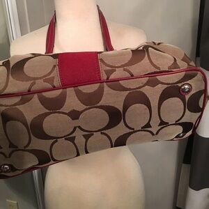 Coach Signature Canvas Satchel Bag Beige Brown Red Purse Handbag