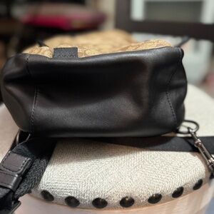 Coach Signature Canvas Sling Pack Crossbody Bag — Tan & Black Leather