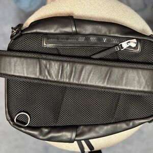 Features: Adjustable strap, zip pockets, embossed Coach logo