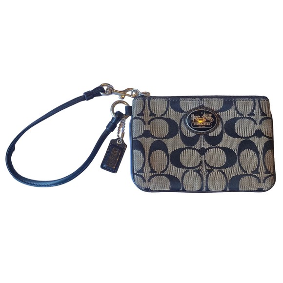 Coach Signature Canvas Tan Black Wristlet