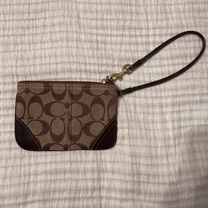 Coach Signature Canvas Wristlet Preloved. Wear on corner leather.