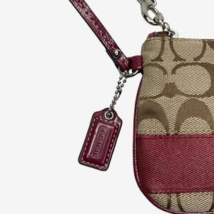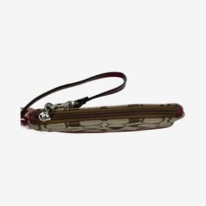 Coach Signature Canvas Wristlet Burgundy Patent Trim Small Pouch Bag