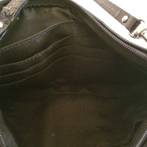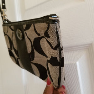 Pre-owned Vintage Canvas Wristlet Black Stripe Clutch