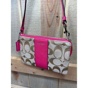 Coach Signature Canvas Wristlet With Pink Leather Trim