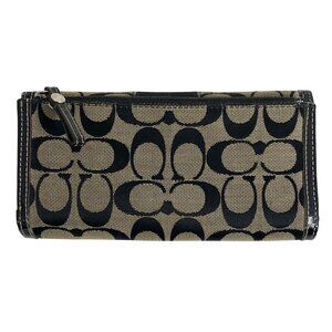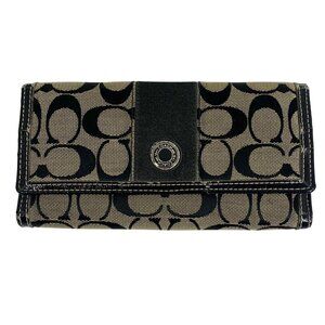 Coach Signature Canvas/Leather Black/Gray Wallet Snap Closure, Zip Compartment