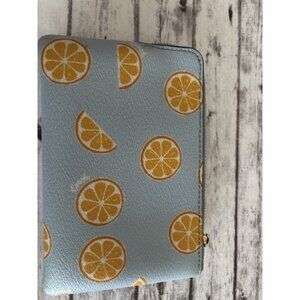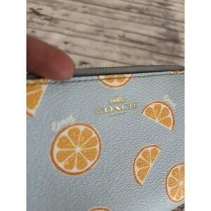 Coach Signature Coated Canvas Small Wristlet in Orange Print Orange Blue