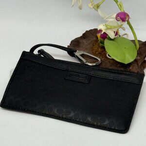Coach Signature Coin Purse Card Case Lipstick Holder Keychain Wallet -Black -New
