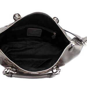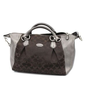 Coach Signature Collette handbag in grey and silver with a brown signature print center panel.
