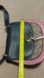 Chic Coach saddle bag with black leather flap and pink accents. Features signature brown pattern and gold-tone clasp. ** see pictures for condition please!