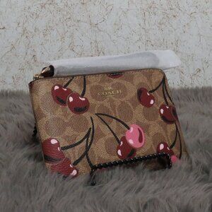Coach Signature Corner Zip Wristlet with Cherry Print (CZ450)