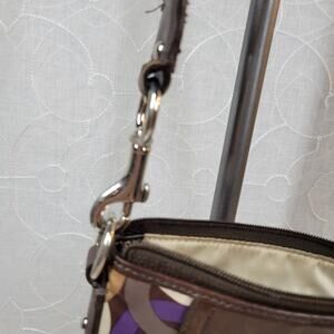 Coach Signature Cs Chain Link Op Art Bag Brown Purple Crossbody Fabric Leather