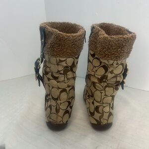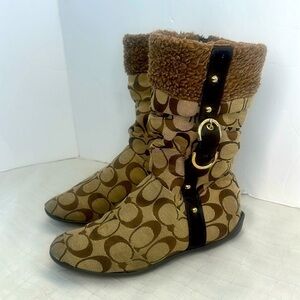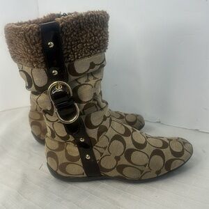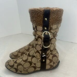 Coach signature C canvas with leather trim and gold hardware boots in brown