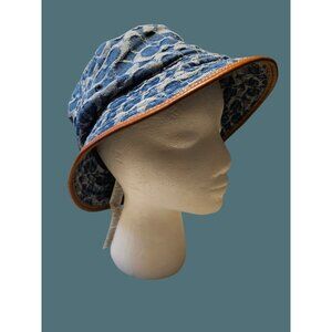 Coach Signature Denim Bucket Hat Leather Trim Unisex OS