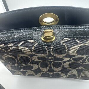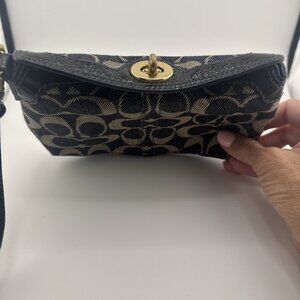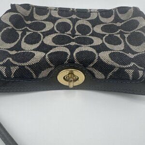 Coach Signature Denim Gold Top Turn lock Large Wristlet 8x5x2” VGUC