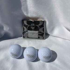 Coach Signature Denim Golf Tee Set. Includes everything seen in the images. Used, in good condition. Divot tool contains scratches, which is inevitable since it is made of a shiny metal material. Open to offers, send me a message.