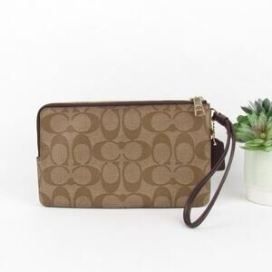 Coach Signature Double Zip Wristlet L-8”, H-4.75”