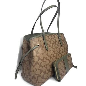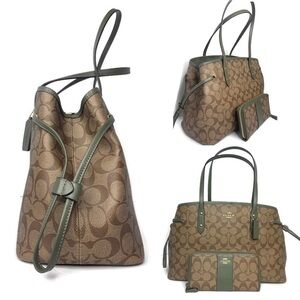 Military Green (Olive, Avocado) and Saddle Brown Bag & Wallet Set, New with Tags. Beautiful neutral color!!! Coach Box Available for Gift Giving Upon Request. All images are of the actual bag set. I spend a lot of time on my pictures, please do not duplicate.