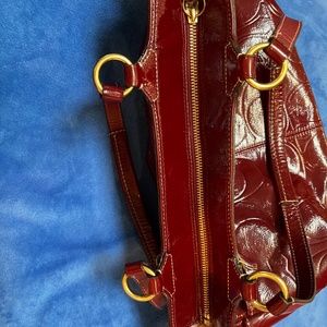 Coach Signature Embossed Gallery Burgundy Patent Leather Tote