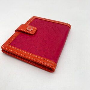 Coach Signature Embossed Leather Pink & Orange Bifold Wallet