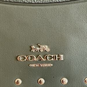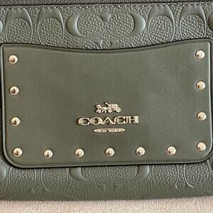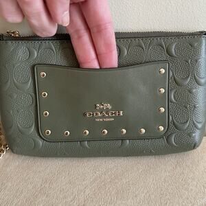 Coach Signature Embossed Leather Rivet Chain Wristlet Military Green F76763.