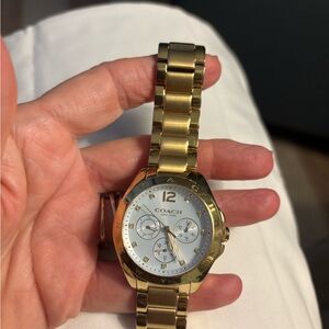 Elegant Coach bracelet in sleek silver. Features signature logo. Excellent used condition with minimal signs of wear on interior. See photos.